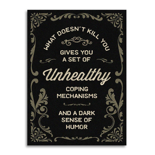 $ 6.00For the friend who laughs through the fallout: this card — “what doesn't kill you gives you a set of unhealthy coping mechanisms and a dark sense o...