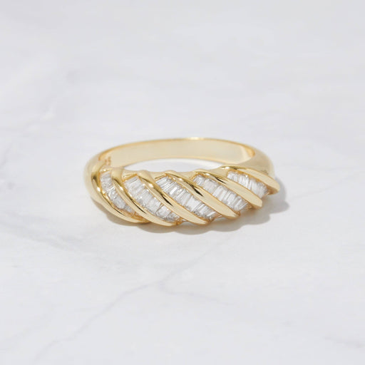 $ 56.00Turn heads with our Baguette Diamond Starburst Dome Ring! Featuring a starburst design with shimmering center baguette diamond set in a bezel surro...