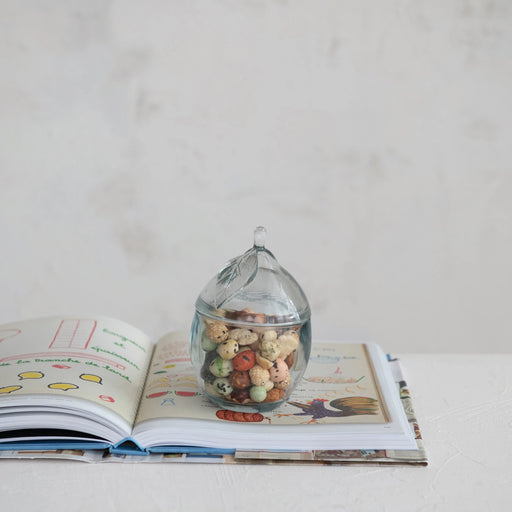 $ 22.003-1/2" Round x 3-1/4"H Glass Jar w/ Lid & Hand-Blown Shrimp Handle Food safe glassware