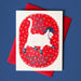 This fancy-free cowboy cat is in their best boots and ready to strut around on their birthday. Risograph printed in bright red and federal blue.