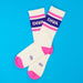 These super-comfy, unisex, one-size-fits-most Gym Socks are made in the USA of Natural Cotton with accents of Cream Nylon, Purple Nylon, Flash Pink Nylon.