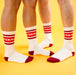 These super-comfy, unisex, one-size-fits-most Gym Socks are made in the USA of Natural Cotton with accents of Cream Nylon, Cardinal Nylon, Red Nylon.