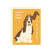 Funny dog birthday greeting card featuring a basset hound with floppy ears and the playful message “What’s that I hear? A birthday?” Perfect for dog lovers and anyone who enjoys lighthearted stationery.