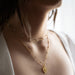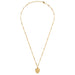 The sacred heart is a powerful symbol of divine love and sacrifice. The heart pendant measures 3/4" and it hangs on a vintage style station chain. Made of 14k gold plated brass. Chain is coated to resist tarnish and create a hypoallergenic surface. Designed and assembled in our Sonoma California studio.