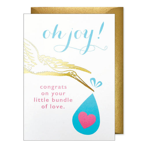 $ 6.00A gold stork flies across this card to deliver love and congratulations on a new baby. A2 folded card, blank inside.